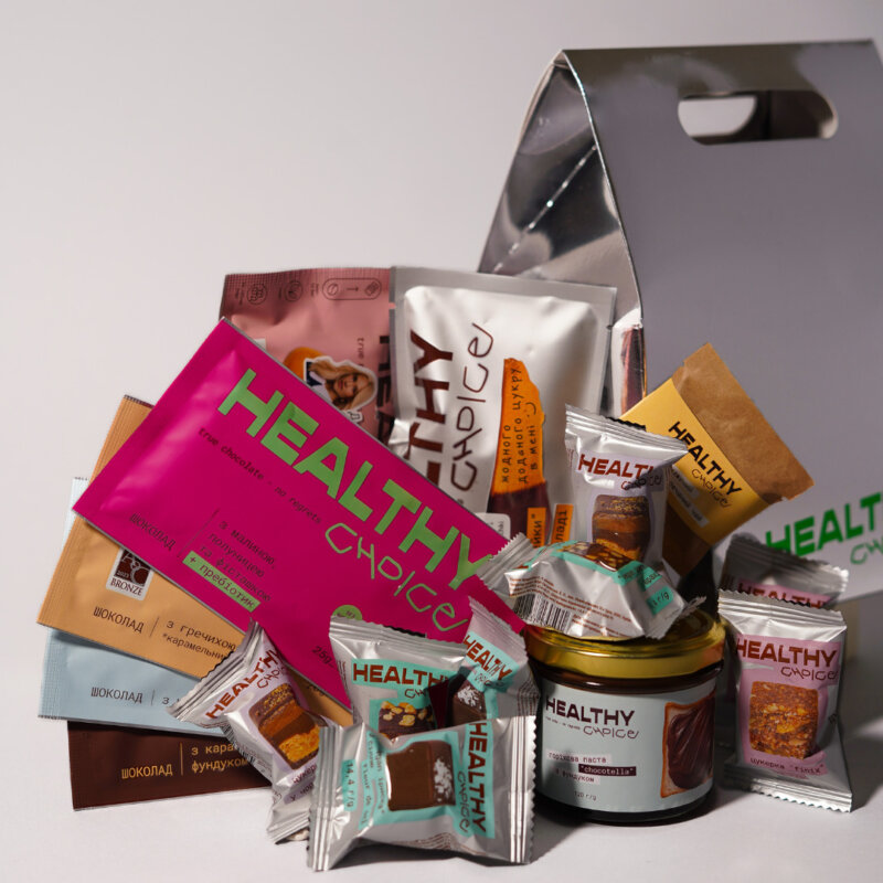 У Healthy Choice до покупки доступні шоу-бокси з солодощами, подарункові варіанти до свят, великі, середні та маленькі набори, солодкі бестселери (карамельні та шоколадні горішки, горіхова паста, дубайський шоколад). Актуальна спеціальна пропозиція – 10% знижка на перше замовлення. Щоб залишатися в курсі нових акцій та свіжих надходжень, достатньо підписатися на оновлення Healthy Choice.