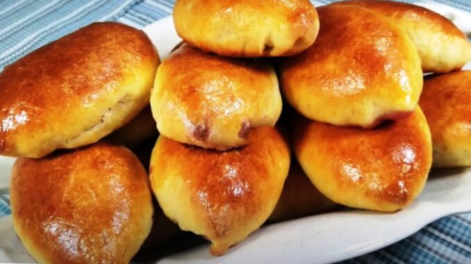 - Випікати в розігрітій духовці до 190 градусів 20-25 хвилин. Час випічки регулюйте по вашій духовці. Пиріжки повинні стати рум’яними і злегка збільшитися.