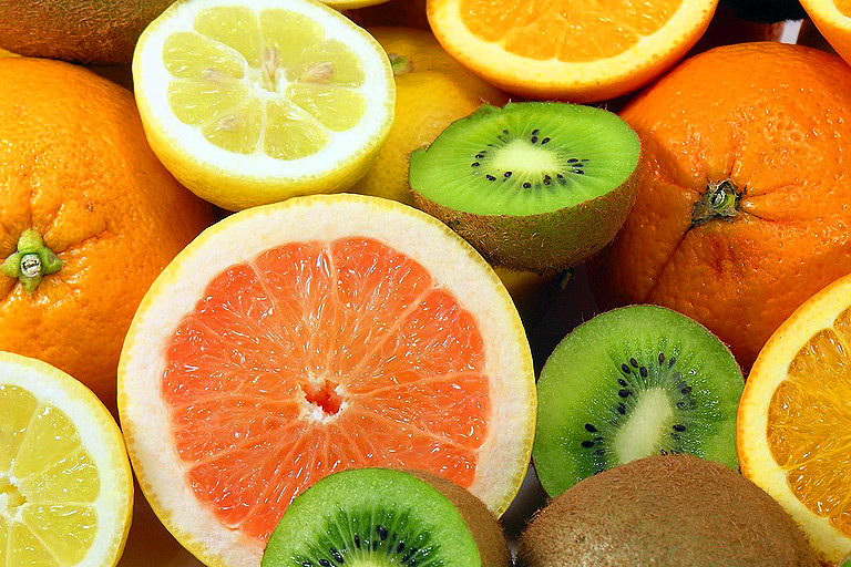 - на лимони, апельсини, ківі і грейпфрути, плоди містять багато аскорбінової кислоти, що підвищує імунну опірність;