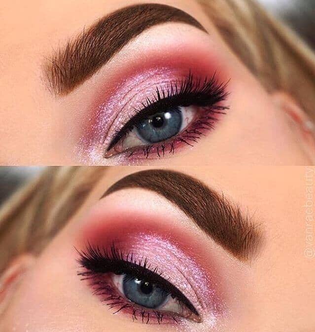 Цей макіяж підійде для будь-якого кольору очей. Світло-рожевий темно-рожевий блиск створюють образ. Спробуйте зробити подібний макіяж очей на будь-яку вечірку, і ви напевно будете в центрі уваги.