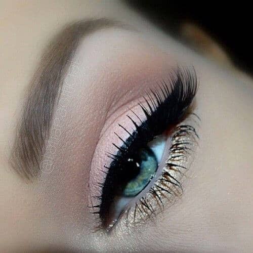 Цей пастельний рожевий макіяж ідеально поєднується з золотим блиском. Лайнер і ніжно-рожевий матовий колір — найкраща комбінація для будь-якого наряду або заходи.