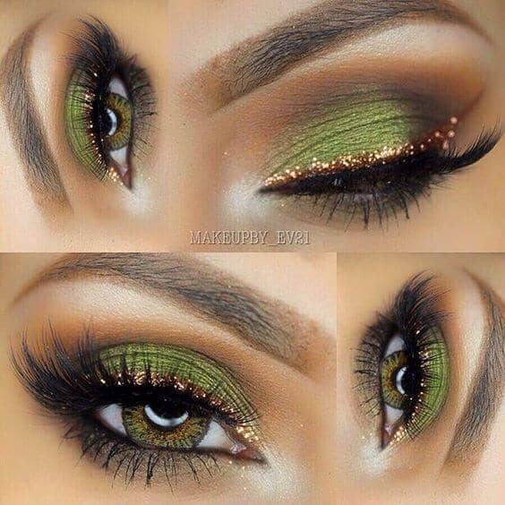 Оливково-зелений можна носити цілий рік, але найбільше ці тіні для повік підійдуть для осенни.