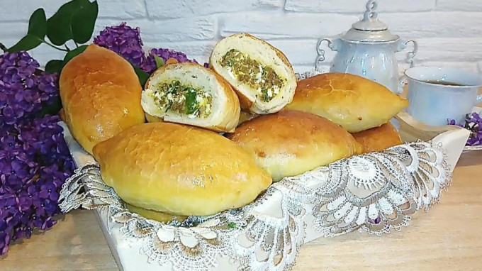 Випічка, приготована за цим рецептом, виходить м’якою та пружною, вона дуже ситна. Дріжджова основа для нього дозріватиме довгий час, але готовий виріб вийде по-справжньому домашнім. Начинка з яйцем і зеленою цибулею виходить соковитою та смачною, а тісто для пиріжків – тонким та ніжним.