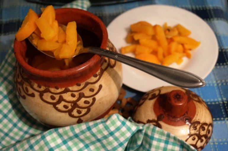 - укласти їх в керамічні горщики і залити водою так, щоб вона прикривала шматочки овоча;