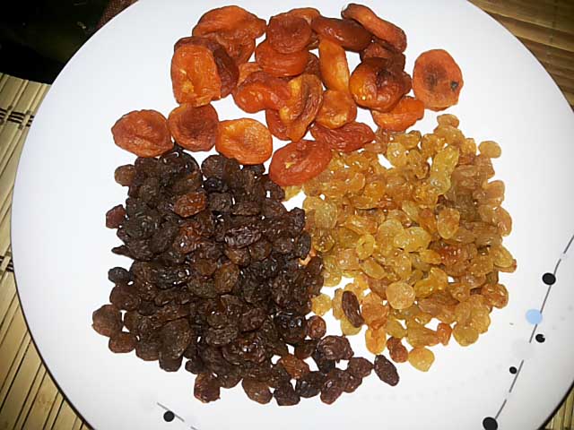 - цукати, сухофрукти (будь-які) — 350 гр