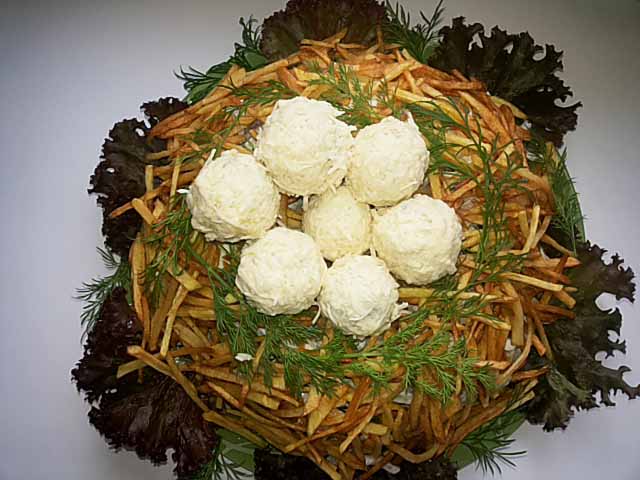 Салат «Гніздо глухаря» — рецепт з м’ясом