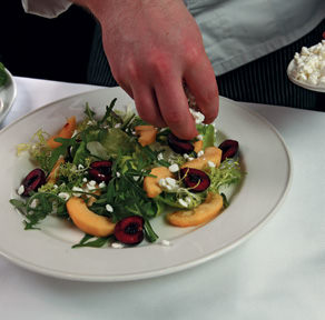 - Стебла кульбаби дрібно нарізати, викласти на плоске блюдо. Додати фрукти і полити заправкою.