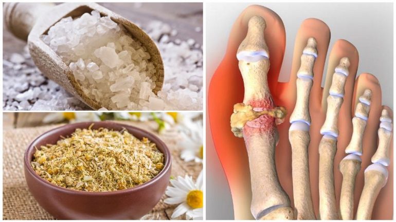 - Змішати в рівних частках морську сіль, подрібнену аптечну ромашку й кип’ячену воду. Прогріти суміш на повільному вогні близько 30 хв. Проціджений відвар використовувати для ванночок для суглобів або примочок. Курс — до 10 щоденних процедур.