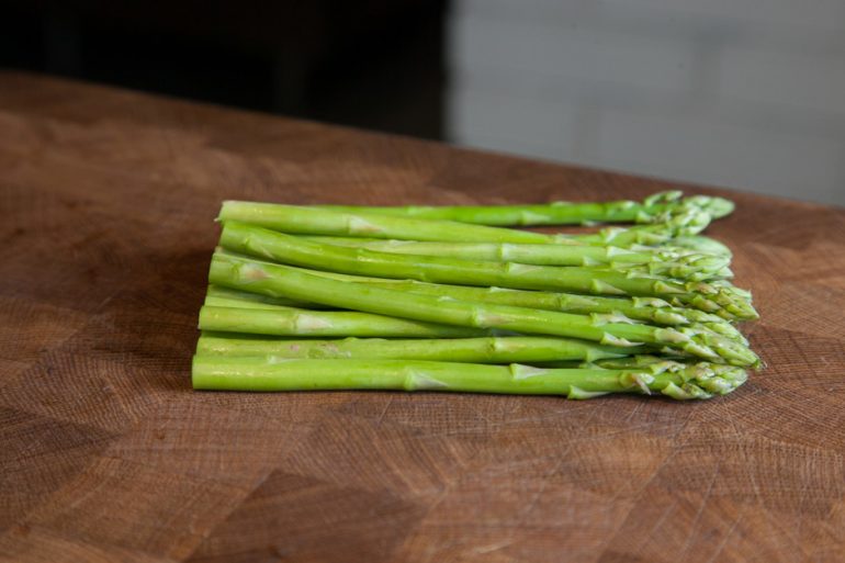 - нарізати кілька свіжих зелених пагонів спаржі, попередньо обрізавши нижні частини;