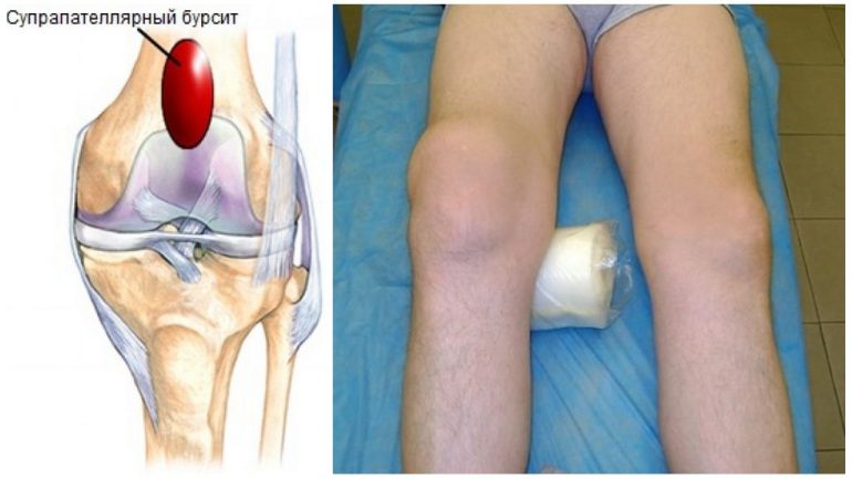 | Інфрапателярний | Запалення піднадколінкової бурси. Біля коліна їх дві: одна підшкірна, розташована між шкірою і сухожиллям під коліном; інша — глибока, прилягає з внутрішнього боку до сухожилля, стикається з головкою кістки та підколінним жиром. |