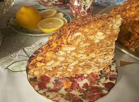 15. Готовий торт, незважаючи на зовнішню жорсткість, легко ріжеться на шматочки. І їсти мені подобається його не ложечкою, а руками. До речі, коли пригощала своїх гостей, помітила, що не тільки мені це подобається. Подавати з гарячим чаєм.