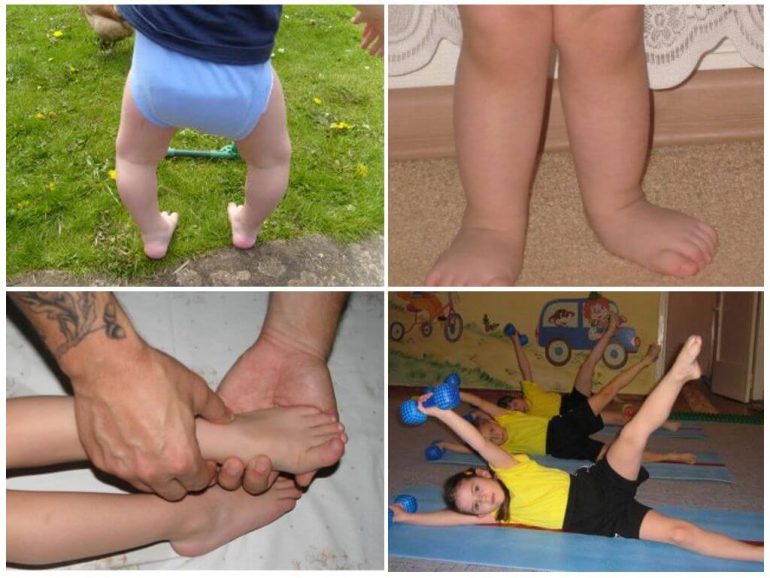 | Симптоми | Уражені стопи втрачають амортизуючу функцію, тому хода болісна. Дитина рухається незграбно, часто падає і втрачає інтерес до активних ігор | Деформація стоп і гомілок ускладнює пересування: хода сповільнюється, дитина нестійка й часто спотикається. Малюк швидко втомлюється і скаржиться на біль у ніжках |