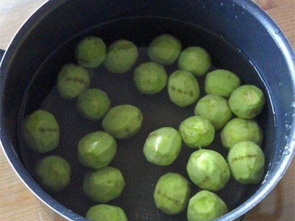 Зібрані горіхи трохи обрізати з обох кінців, щоб дати вийти гірким речовин в воду. Вимочувати у воді так само, як і в попередніх випадках. Деякі джерела рекомендують продовжити підготовчий період до двох тижнів. Далі слідувати рецептом: