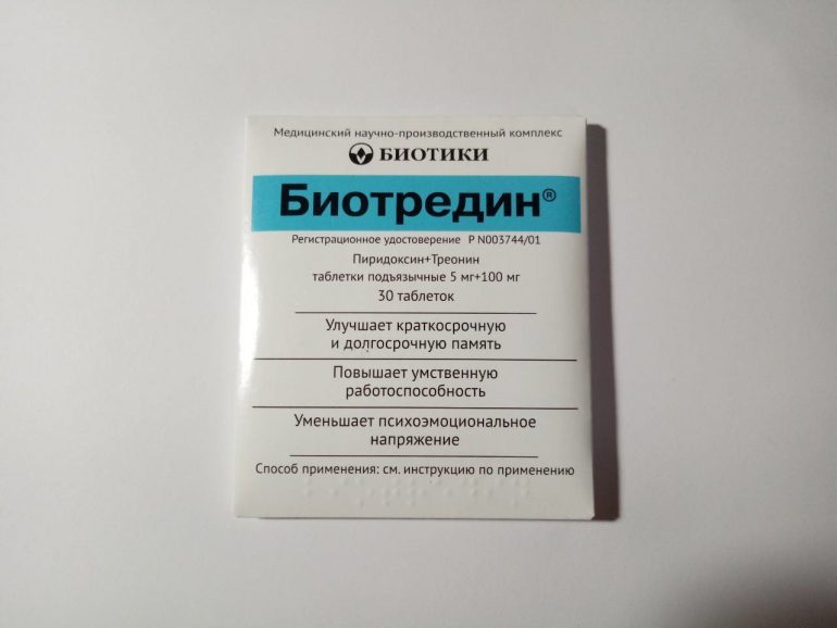 Биотредин, також виготовляється в Україні, створений на основі вітаміну В6 і амінокислоти треоніна. Ліки належить до категорії фітодобавки. Вона відмінно покращує пам’ять у підлітків – як довгострокову, так і короткострокову. Також вона підвищує активність головного мозку, знімає напругу, тривогу. В день дають 1-2 таблетки під язик.