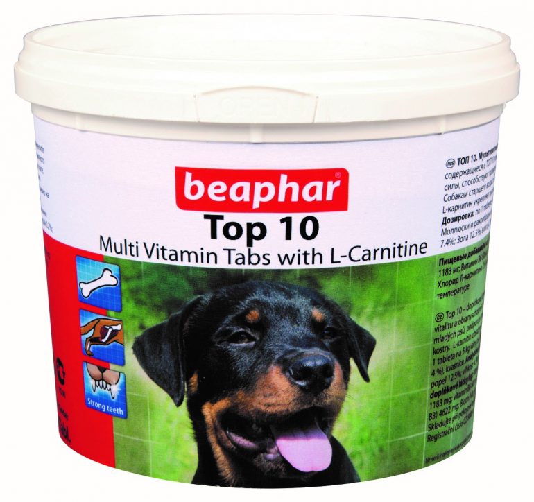 - «Beaphar TOP 10». Препарат сприяє підвищенню життєвого тонусу і забезпечує зростаючий організм собаки усіма необхідними елементами. Швидко поповнює запас енергії при посилених фізичних навантаженнях. Комплекс додатково збагачений L-карнітином.