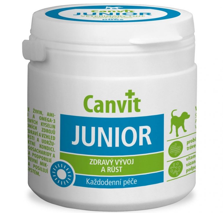 - «Canvit junior». Препарат додатково збагачений жирними кислотами. Сприяє рівномірному розвитку вихованця і підвищує імунітет. Здатний повністю компенсувати недоліки харчування. Повний курс – один місяць.