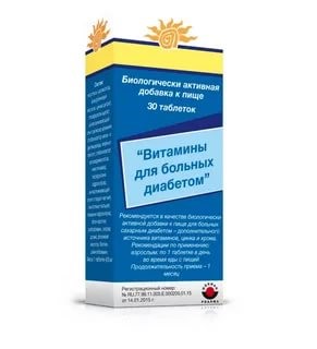 - Для хворих на діабет. Засіб містить вітаміни, які відносяться до групи В, токоферол, селен, цинк, хром, магній. Біологічно активні добавки розроблені для прийому дорослими людьми. Курс лікування становить 1 місяць. Приймати комплекс можна на будь-якій стадії цукрового діабету.