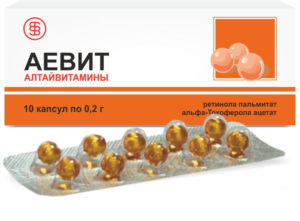 - Аевіт. Містить ретинол і токоферол. Сприяє регенерації тканинних структур, покращує метаболічні процеси, нормалізує роботу печінки.