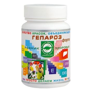 - Гепароз Форте. Препарат природного походження. Забезпечує підтримку печінки, не має побічних реакцій. Крім необхідних вітамінів до складу включені рослинні компоненти, розторопша, кукурудзяні рильця, шипшина, кульбаба, виноградні кісточки, інші речовини — лактоза, лікопін, антоціани.