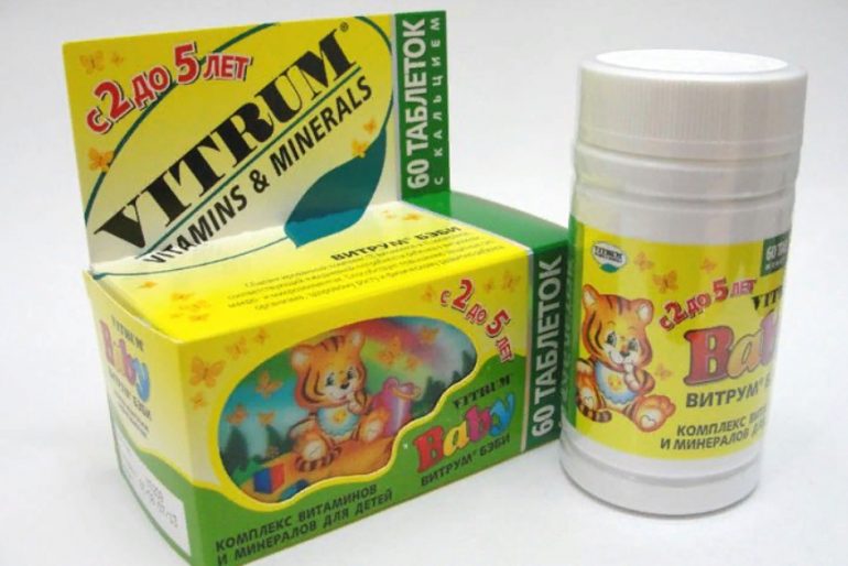 - Вітрум Бебі містить 12 вітамінних речовин і 10 мінеральних. Продаються у формі тварин. Смак приємний, не викликають побічних реакцій.