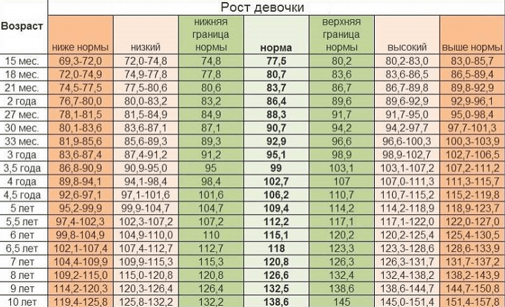 Таблиця зросту і ваги для дівчаток від 15 місяців до 10 років за даними ВООЗ