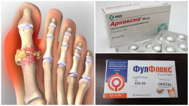 Таблетовані знеболювальні при подагрі повинні мати також протизапальну дію. До таких препаратів відносяться Аркоксия і ФулФлекс.